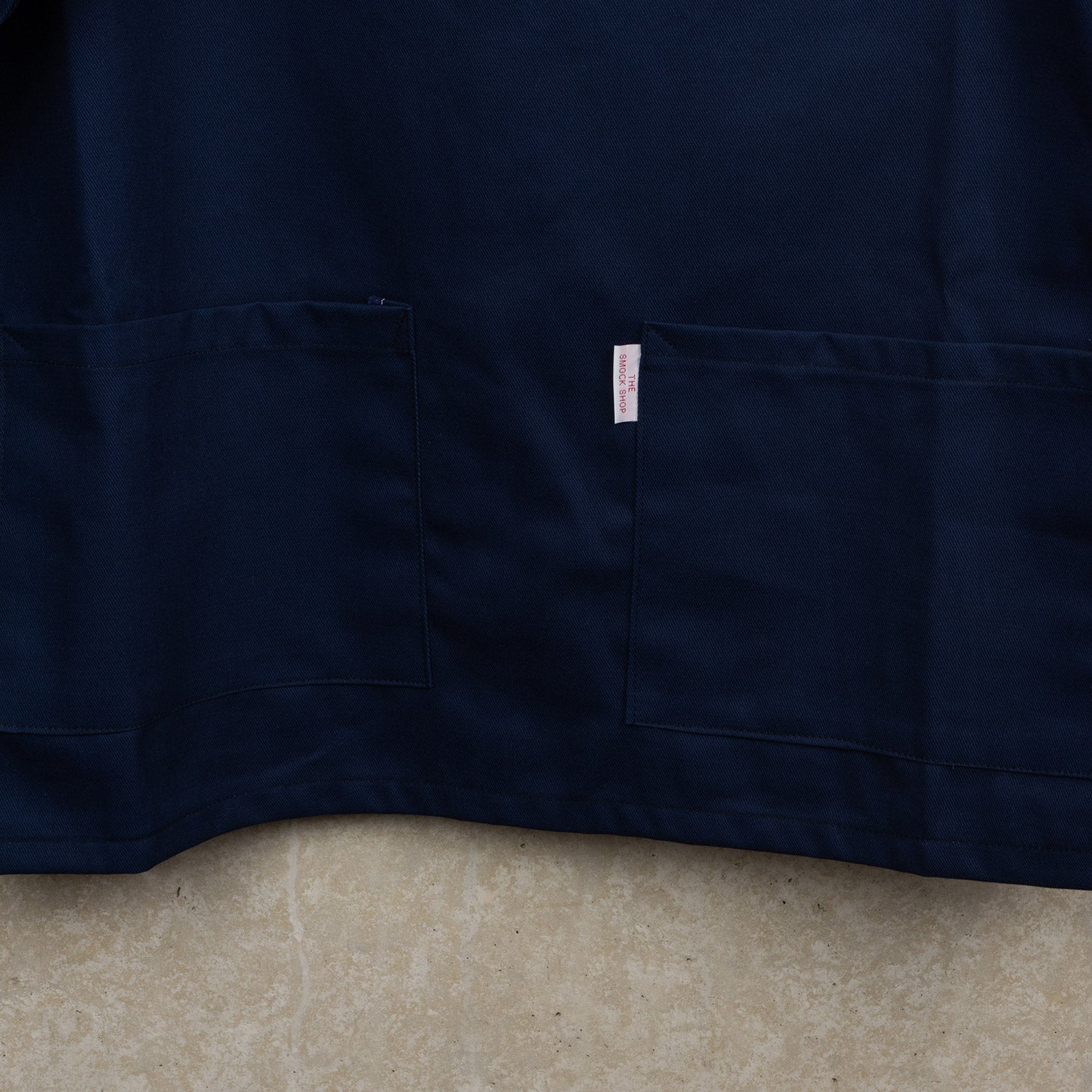 Made in the traditional style, this navy crew neck fisherman's smock was originally worn to keep woollen jumpers underneath clean while out at sea. This contemporary version has the benefit of full-length sleeves and two front pockets.