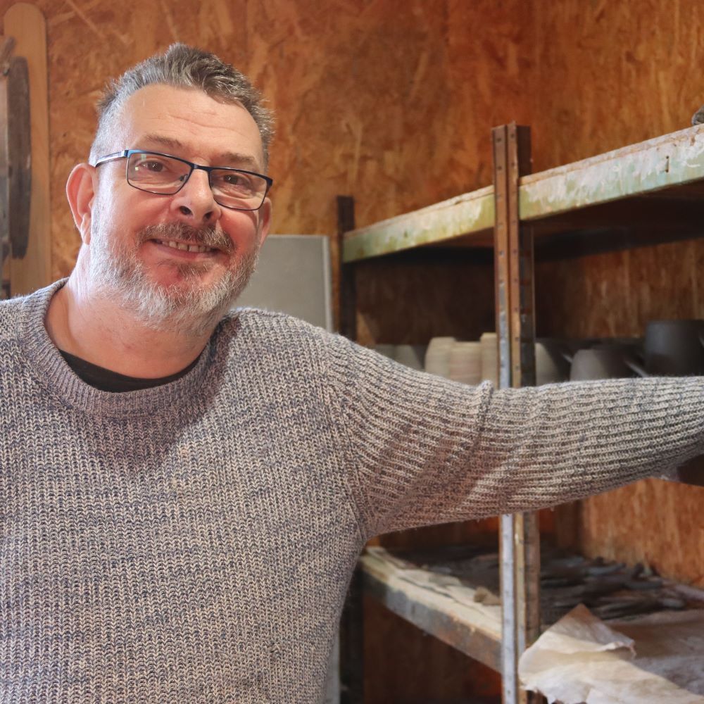 Gary (One Armed Potter) lost the use of his right arm in a motorbike accident in 2003. Since then, he learned how to make a variety of pieces using only his left hand.